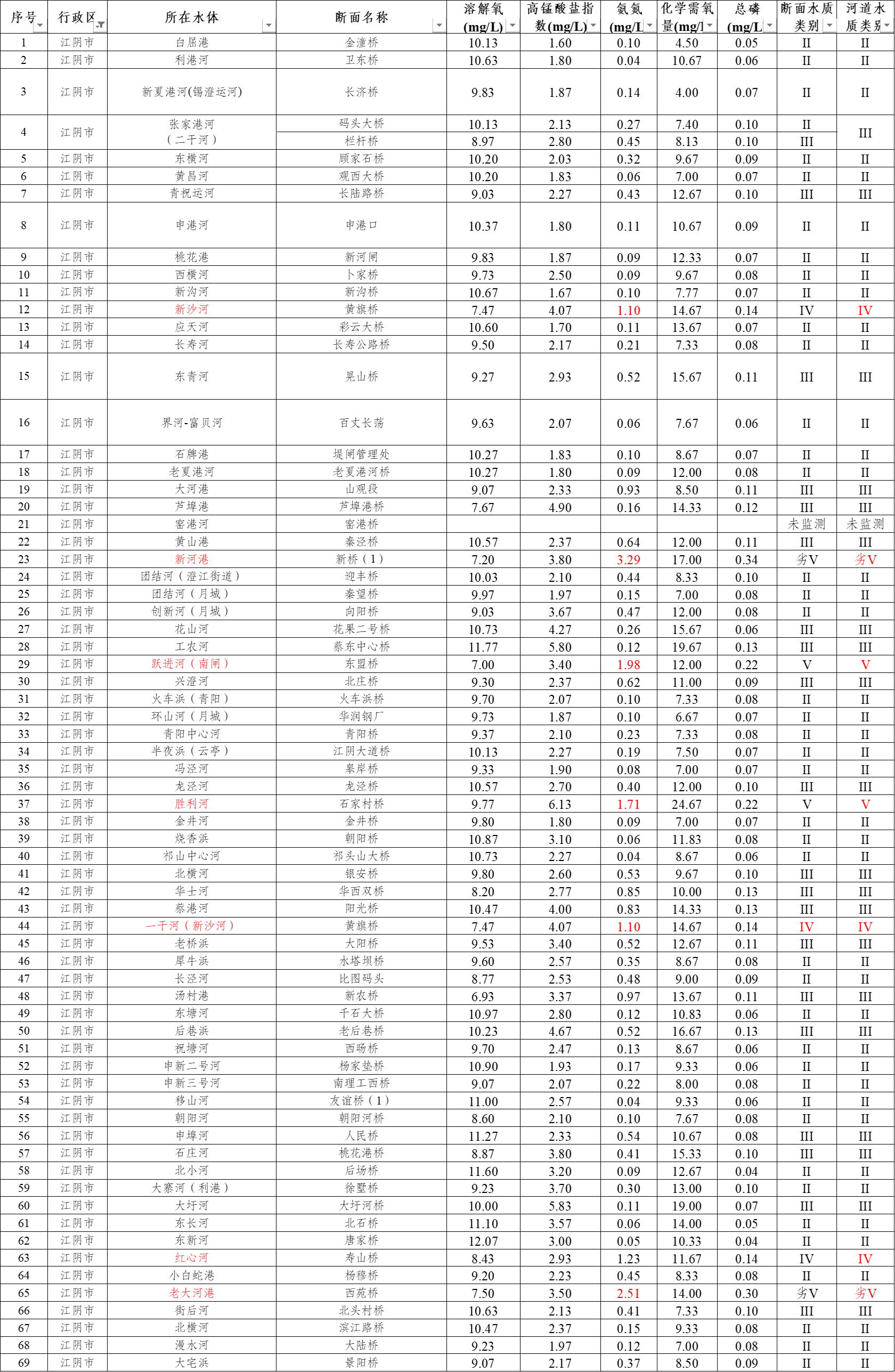 全市69條環境綜合整治河道水質明細表(2025年1-3月)