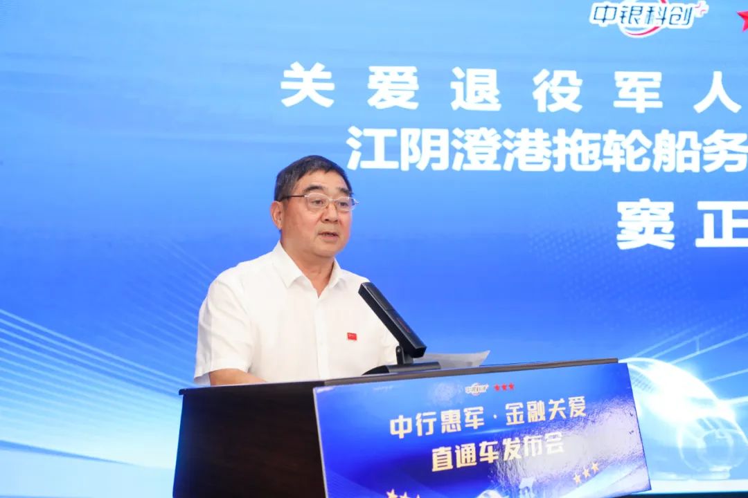 江陰市關(guān)愛退役軍人協(xié)會副會長竇正滿發(fā)言,呼吁社會各界共同參與擁軍事業(yè),構(gòu)建“政府引導(dǎo)、金融助力、社會協(xié)同”的服務(wù)新格局。