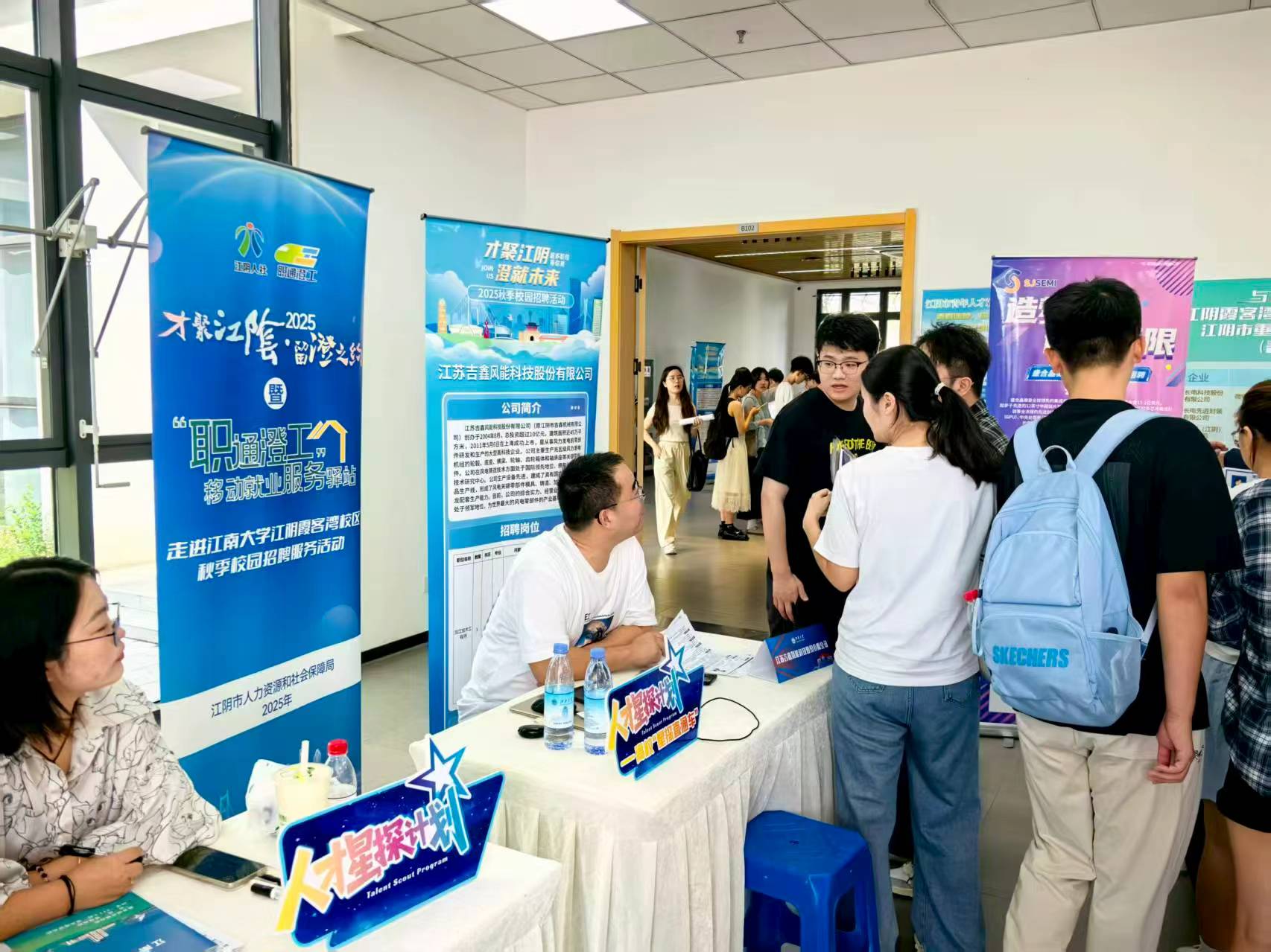 學子手持精心準備的簡歷穿梭展位,細致咨詢崗位要求、職業發展路徑及福利待遇;企業招聘人員則耐心介紹發展前景與企業文化,不少展位前排起長隊,雙向的熱忱讓現場活力滿滿。此次活動成果豐碩:吸引江南大學幾百名學子參與,企業累計收到簡歷461份,初步達成就業意向近百人,充分體現江南大學學子對江陰企業的認可與期待。