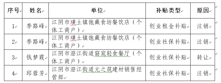 根據《關于進一步明確創業扶持資金申領審核有關問題的通知》(澄人社〔2021〕24號)文件規定,我單位在創業補貼后續監管過程中,發現部分申請對象存在不符合補貼發放條件的情形。為保障政策執行的嚴肅性和公平性,現將結算期為2025年4月至2025年6月間的創業補貼取消發放名單予以公示。