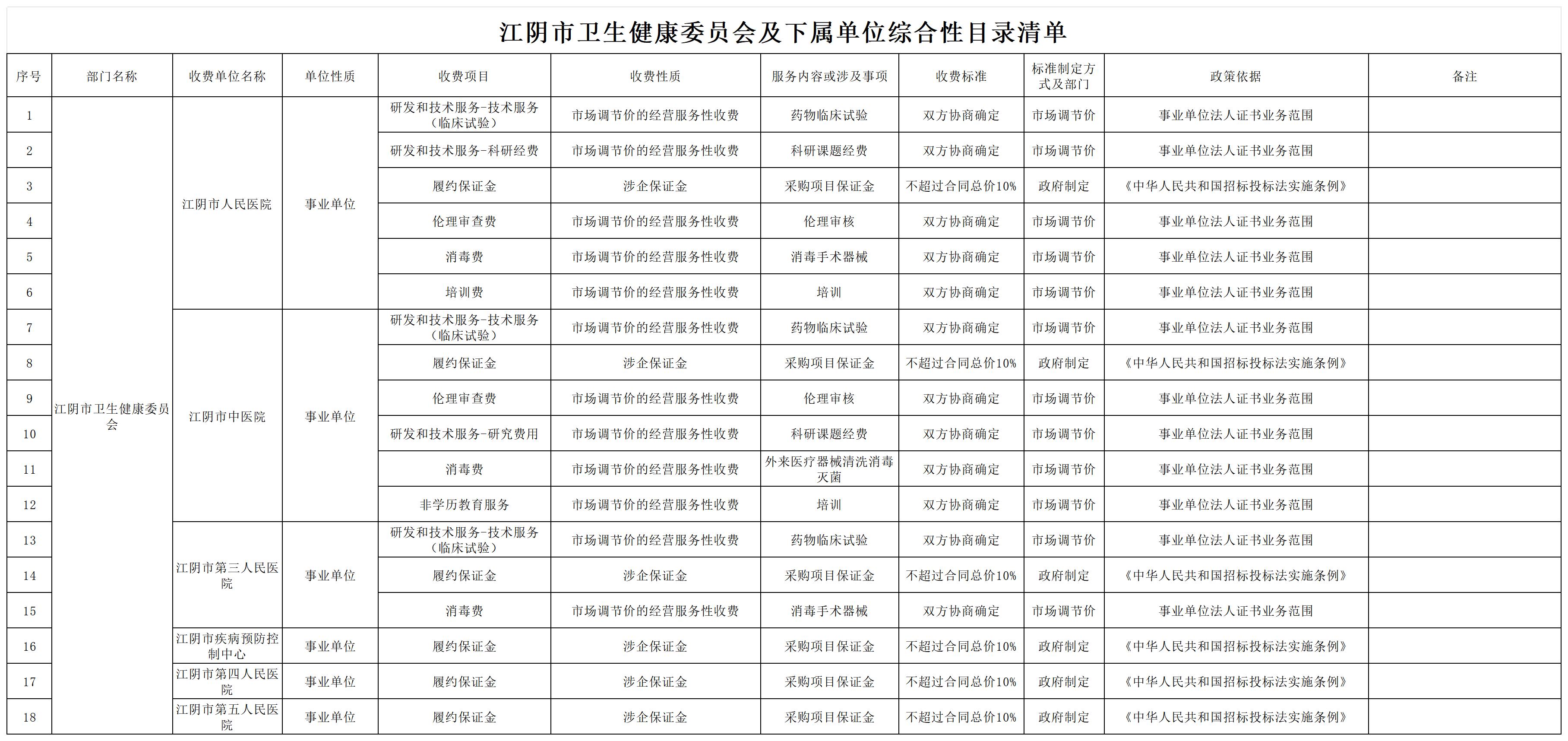 江陰市衛(wèi)生健康委員會(huì)及下屬單位綜合性目錄清單 |