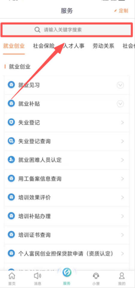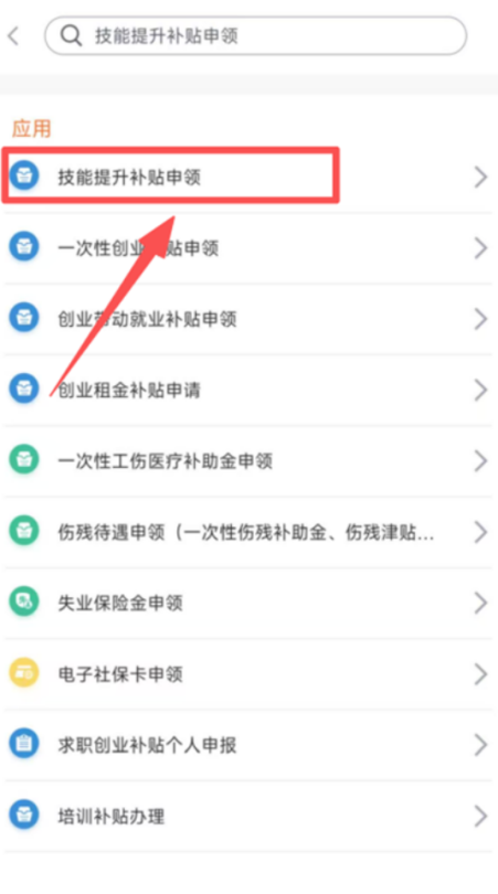 第二步:在“關鍵字搜索”欄輸入“技能提升補貼申領”。