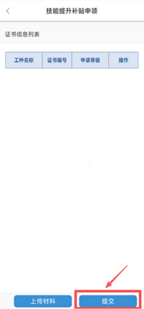第三步:如果符合條件,系統會自動識別個人身份信息及證書編號、補貼標準,選中本次申領補貼的關聯證書,點擊“提交”即可。